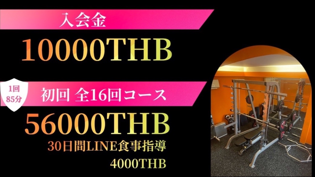 - パーソナルトレーニング8回(1回85分)28000THB